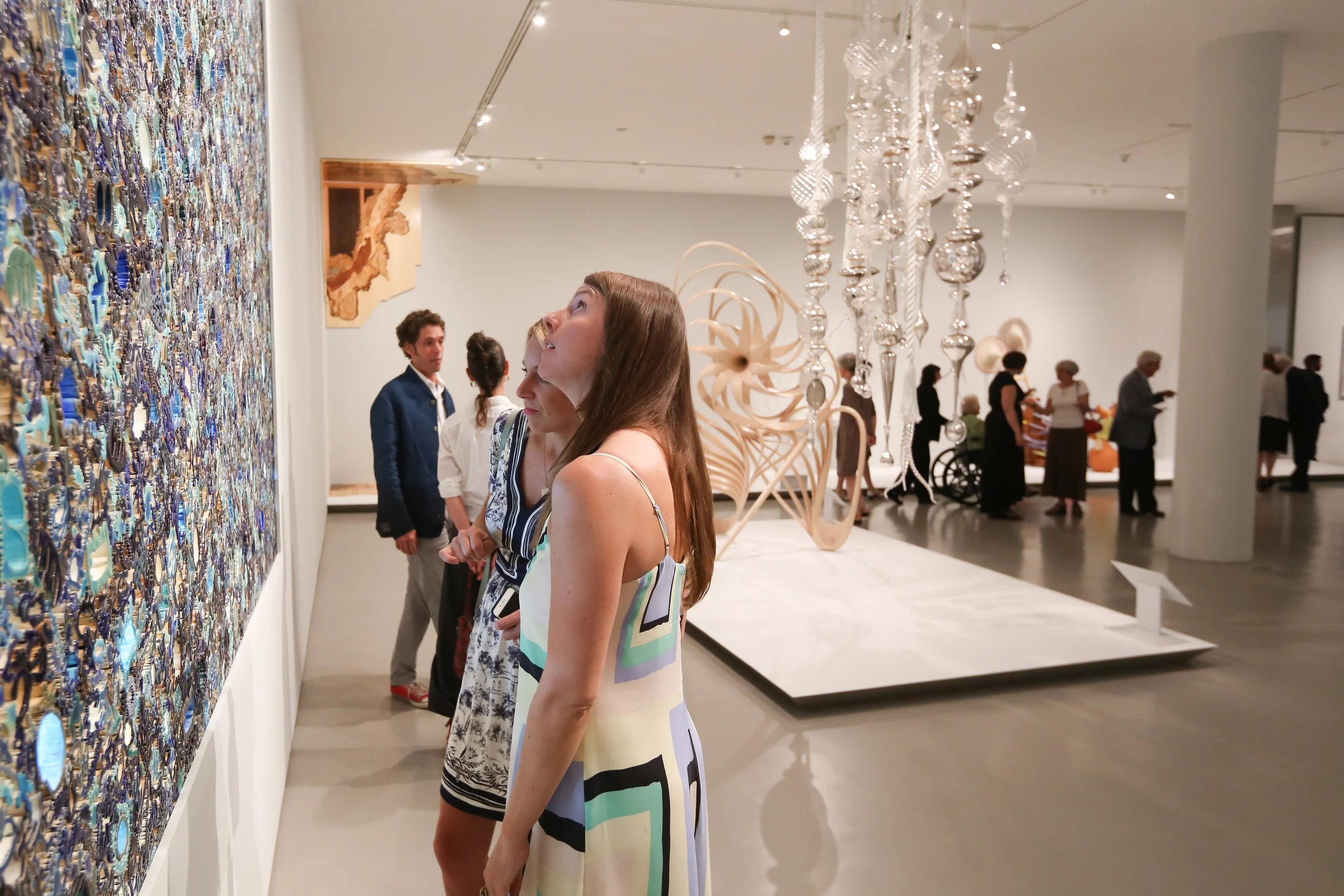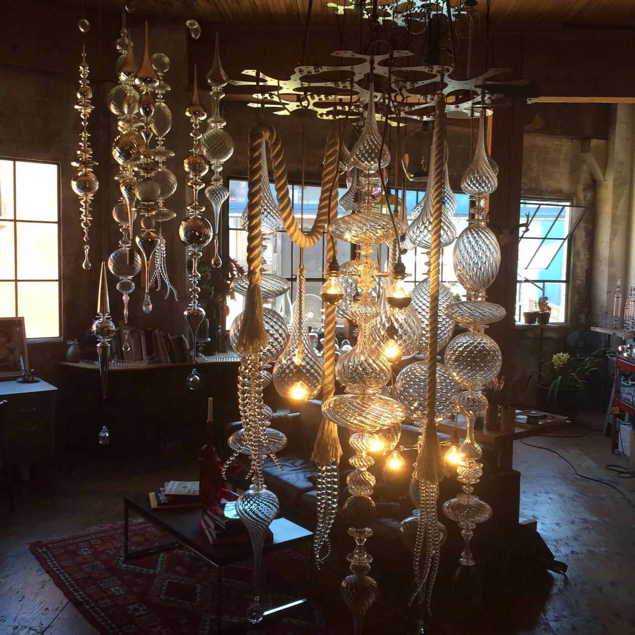 All the way back in May I began preparing a large hanging composition for one of the more exciting and intimidating opportunities I've had in my career to date: a group show at the Museum of Fine Arts, Boston. The curator, there, Emily Zilber, had seen the "Illuminated Sculpture" chandelier last year at SOFA Chicago, and thought something similar might be a good addition to a category of her upcoming show "Crafted: Objects in Flux." Including craft-based artists who make objects with their chosen medium and present them in unconventional ways, the show broke works down into three subsets: the Re-Tooled Object, the Performative Object, and the Immersive Object. The chandelier, composed of many reconfigurable glass parts of varying degrees of optical "density" and texture, hanging from the ceiling instead of parked on a pedestal, seems to have conveyed requisite elements of potential "immersion".