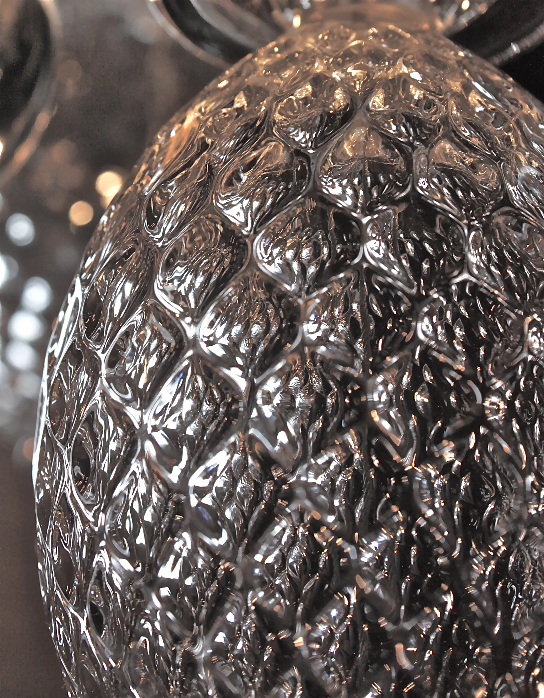 It's the optic qualities of glass that have given us telescopes and microscopes. Their lenses, with their reflections, refractions, transmissions, and distortions, have given us the evidence of our place in the universe as well as the foundation of all modern computer technology. Their shapes and surfaces bend and transform light from solar photons into knowledge. Making the piece for Boston, having the occasion to further explore these phenomena, becoming physically and theoretically immersed in them, I wanted to experiment with another technique- mirror. Despite the unfortunate side-effect of constantly running into your own reflection, the mirrored surface does more than just reflect. It gives the viewer of the mirror the opportunity to move through the surface. The distortions of the mirrored blown-glass shape draw us into an altered, alternative version of reality, further compounding optical density and tampering with the veracity of our perception.